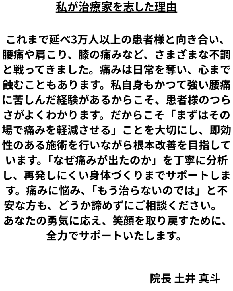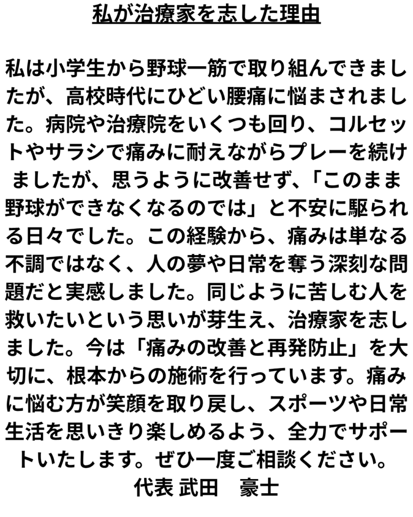 慢性痛(腰痛)で整体でお世話になっていた先生に相談したところ、親身にアドバイスしていただき、6月から本格的にスタート。